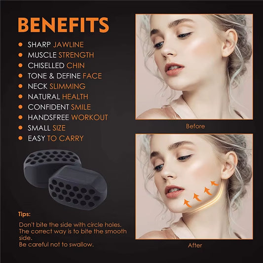 The jaw exerciser strengthens facial muscles, enhances your jawline, and reduces double chin. With regular use, it helps correct asymmetry, tighten the skin, and define natural facial contours.